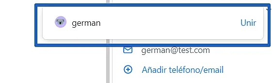 Al hacer clic en el icono, verá una lista de clientes que coincidan con los contactos. Ahí verá la lista y podrá combinarlos en secuencia. Seleccione el cliente que desee y haga clic en "Unir":