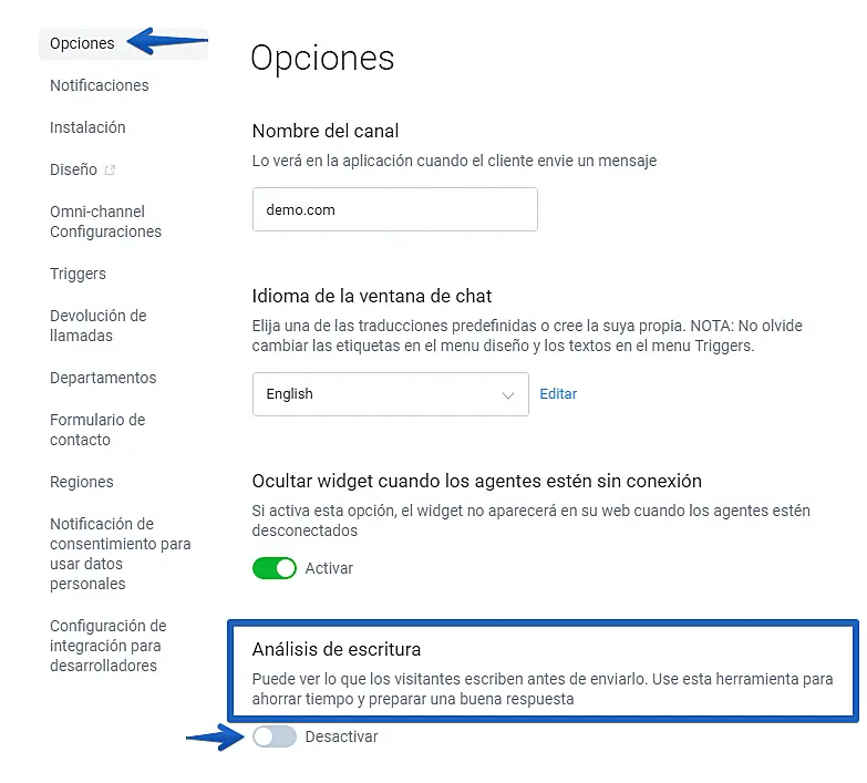 La característica "Análisis de escritura" le permite a los agentes ver lo que los visitantes escriben en tiempo real.
