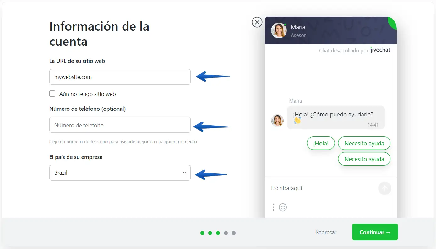 Para instalar el chat en vivo en su sitio web, primero deberá completar el proceso de registro en jivochat.es