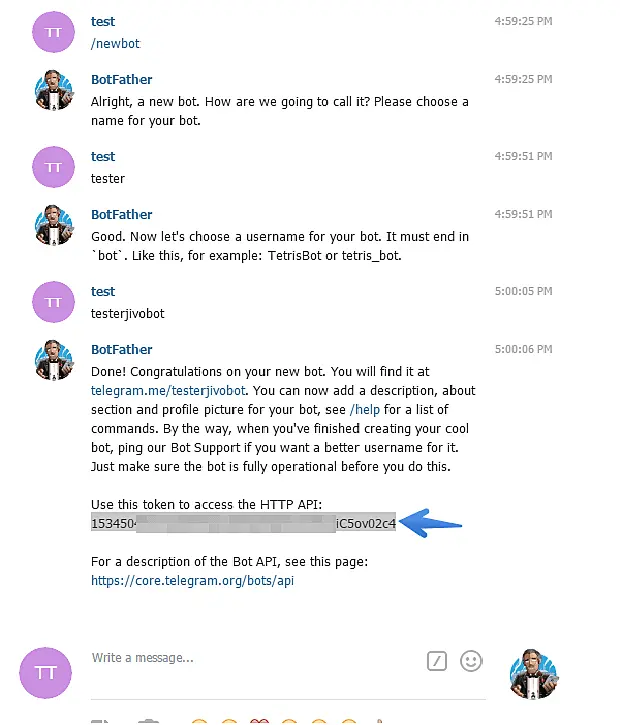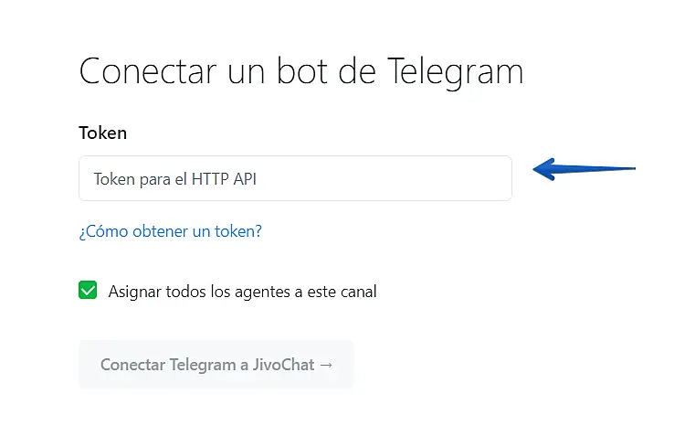 Después de esto usted recibirá una clave de API HTTP. Cópiela y péguela en la configuración de la cuenta de Telegram que se encuentran en su panel de administración de JivoChat.