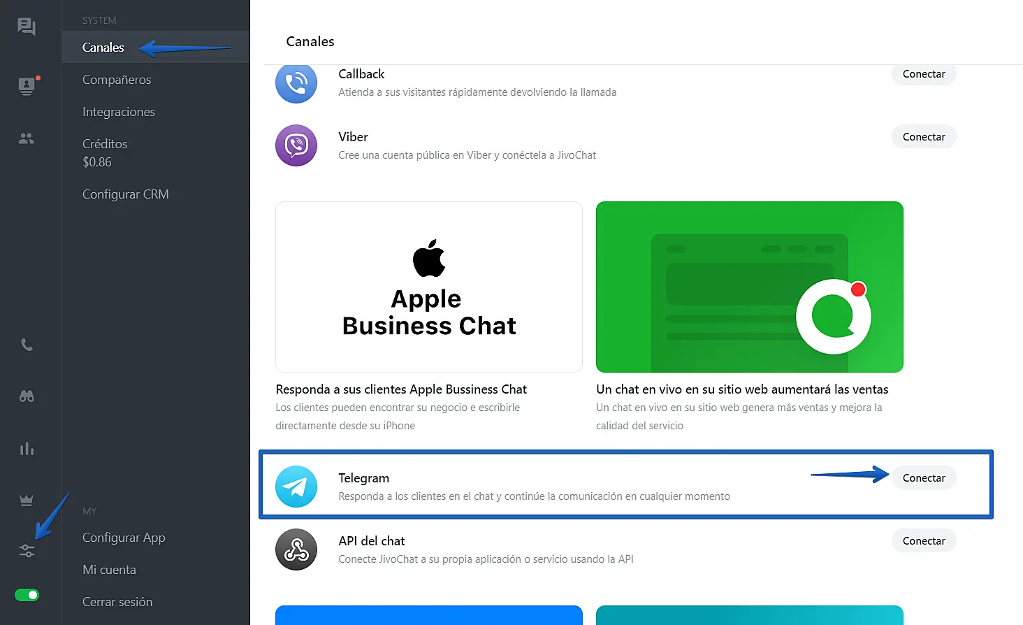 Para poder conectarlo, tendrá que añadir un nuevo canal en su aplicación de JivoChat