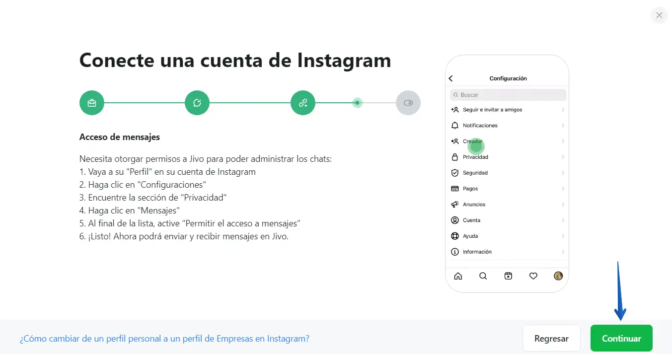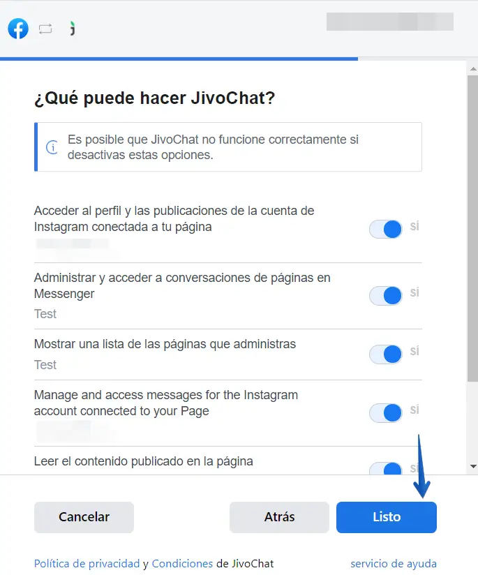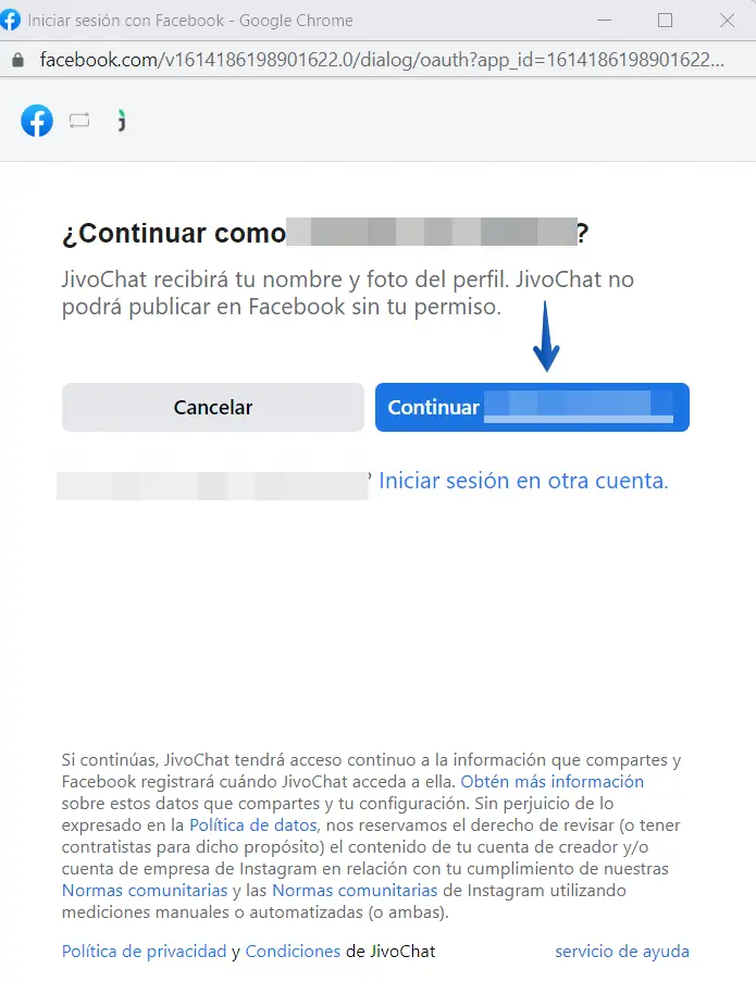 Cuando haya cumplido con todos los requisitos anteriores podrá continuar al paso de conectar en su cuenta de JivoChat.