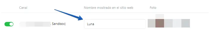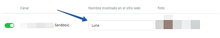 1 - En "Nombre mostrado en el sitio web" puede cambiar el nombre del agente