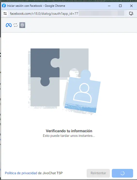 Inicie sesión en Facebbok en la ventana abierta y continúe: