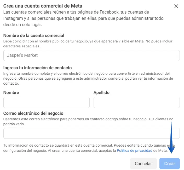 Haga clic aquí para saber cómo crear una cuenta de Meta Business
