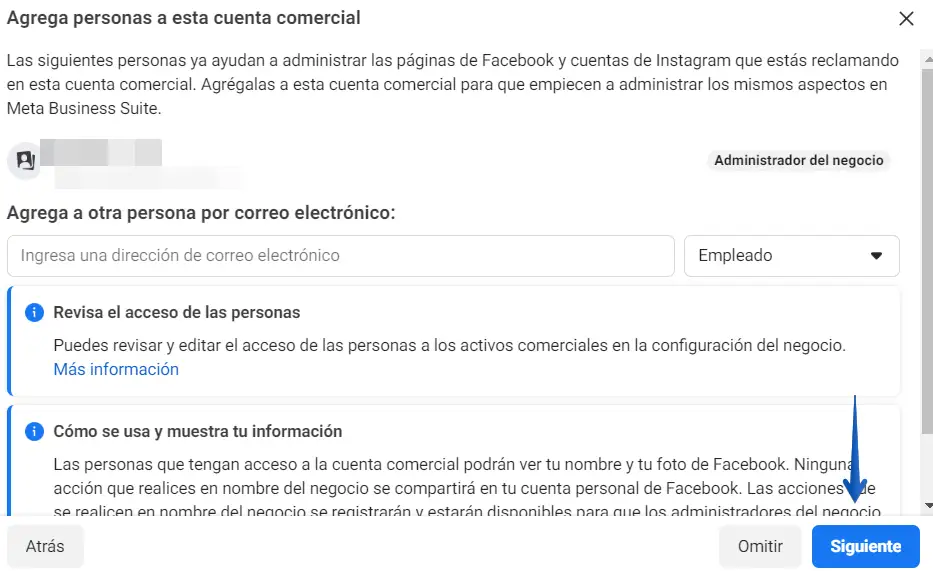 D - Presione "Siguiente" o "Agregue" otra persona a su cuenta comercial (podrá hacerlo también más tarde)