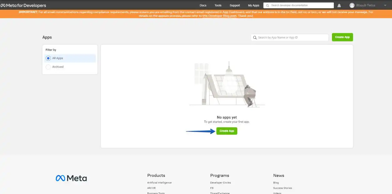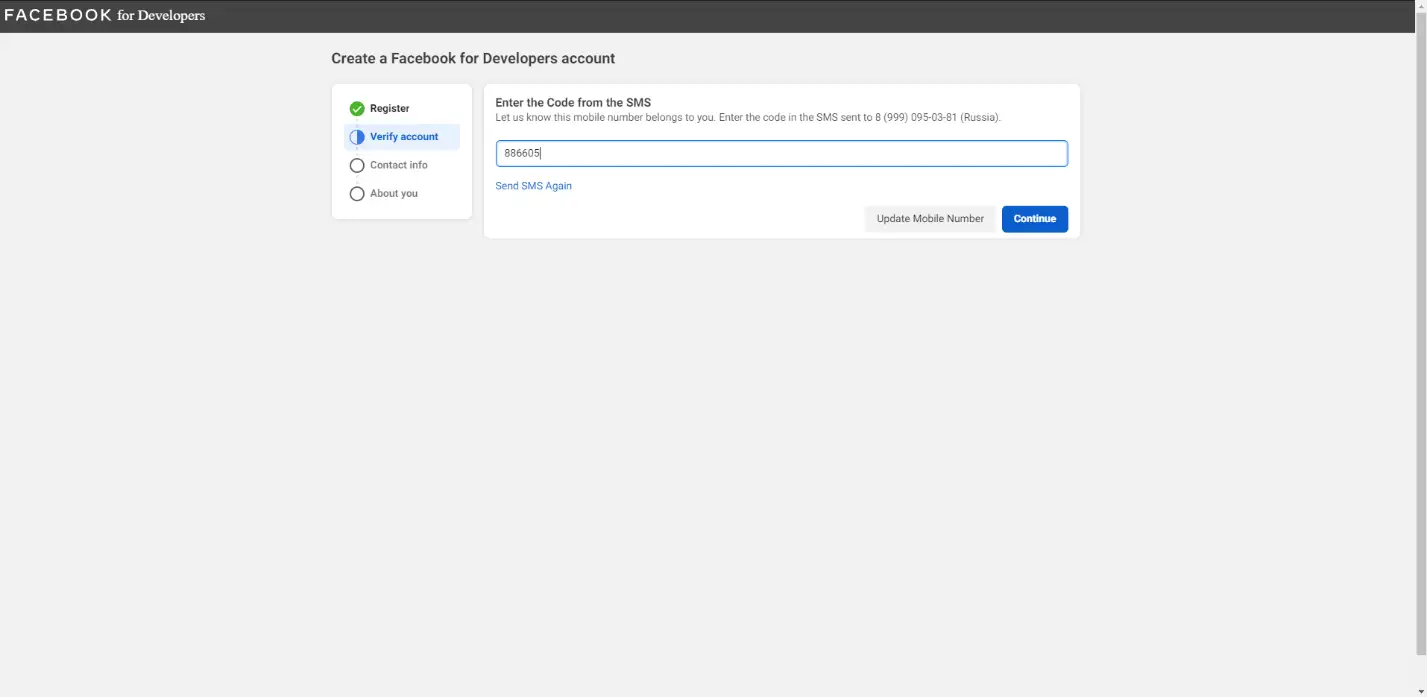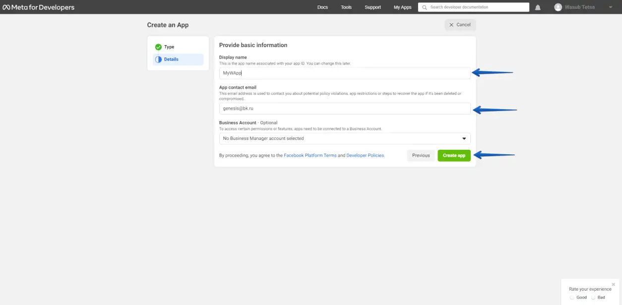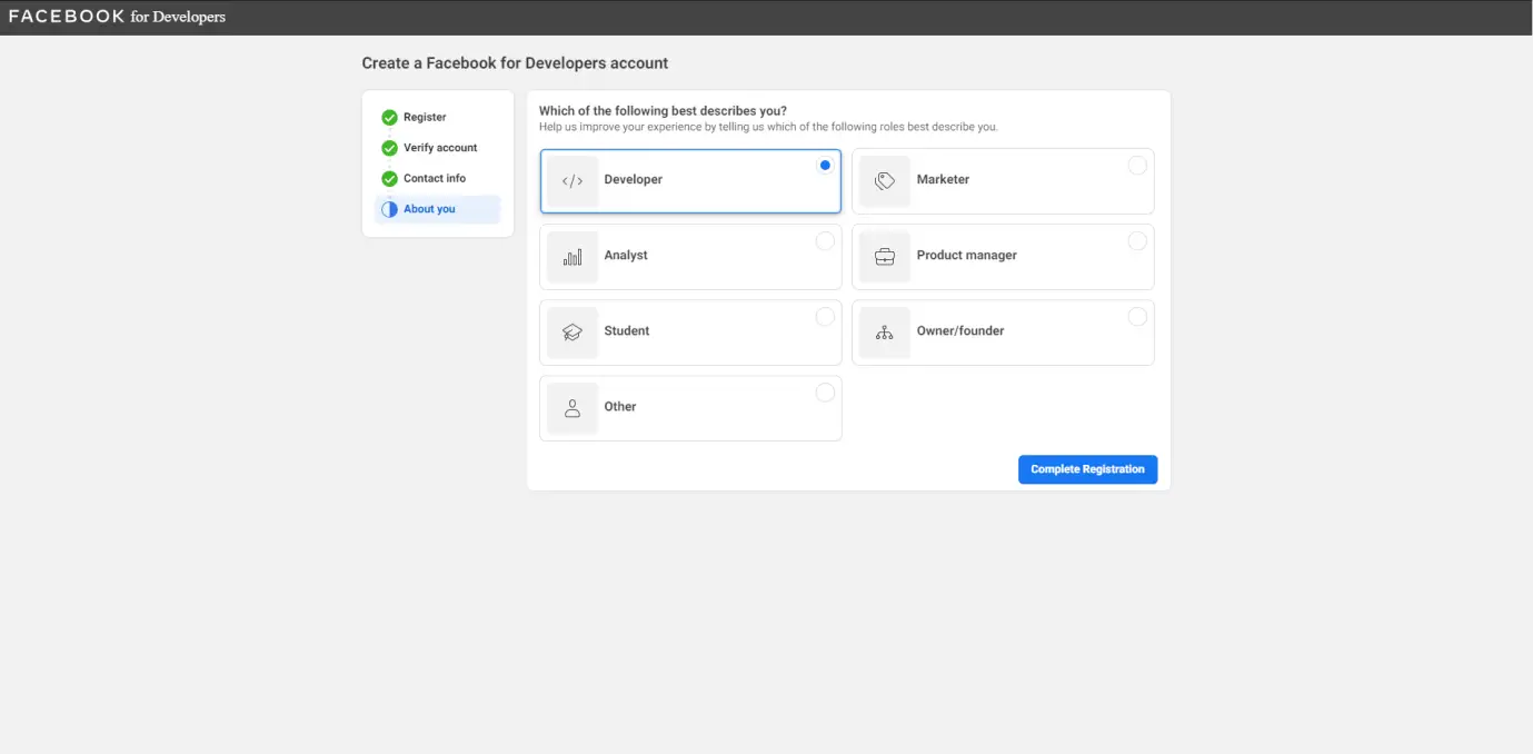 https://developers.facebook.com/async/registration/ y cree una cuenta Meta para desarrolladores