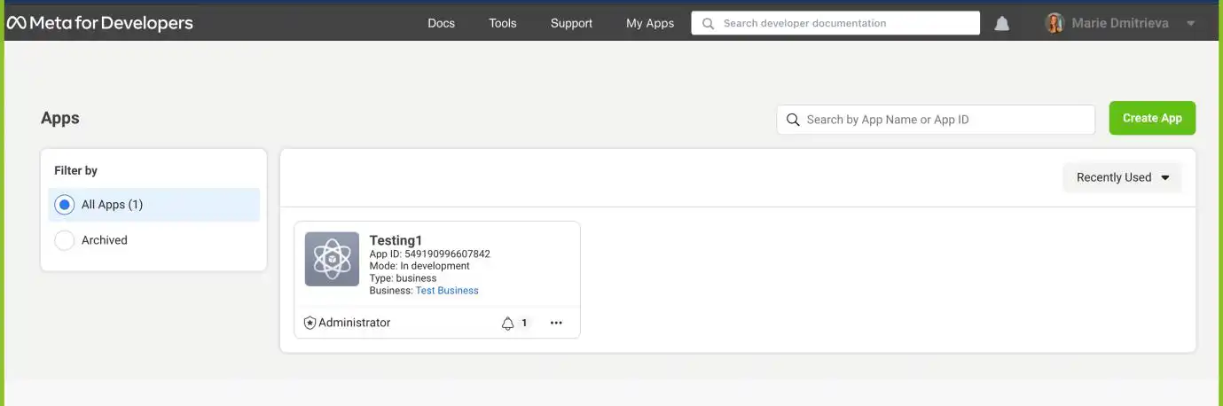 Como resultado, aparecerá una aplicación en su cuenta. ¡Excelente!