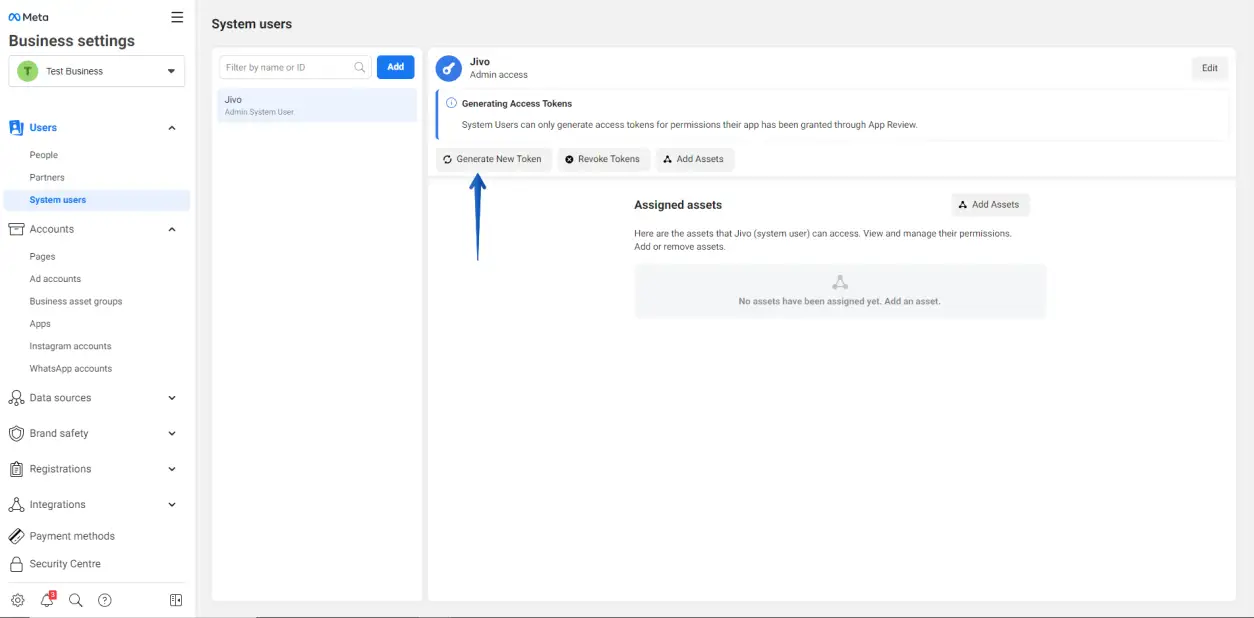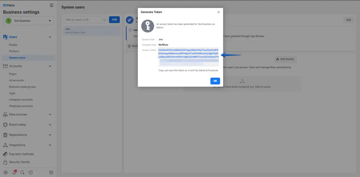 Aviso: si la cuenta de FB es nueva, simplemente no se emitirá el token de Meta automáticamente. Tendrá que esperar ~60 minutos