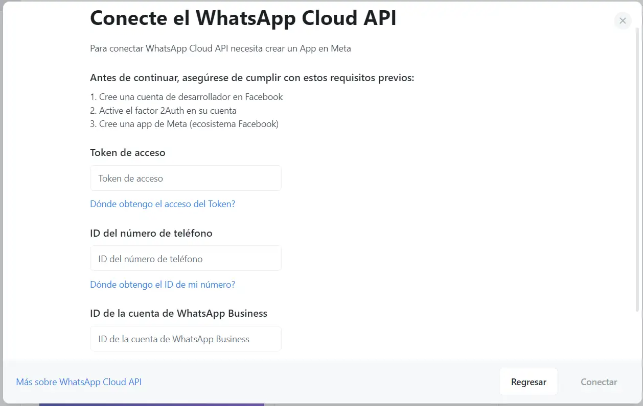 En los pasos anteriores, recibimos los tres parámetros necesarios para conectar el canal de WhatsApp.