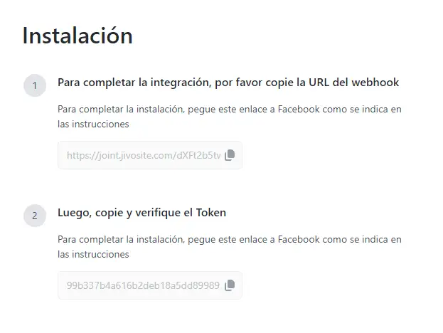 Cópielos y guárdelos, los necesitará cuando conecte el canal a JivoChat